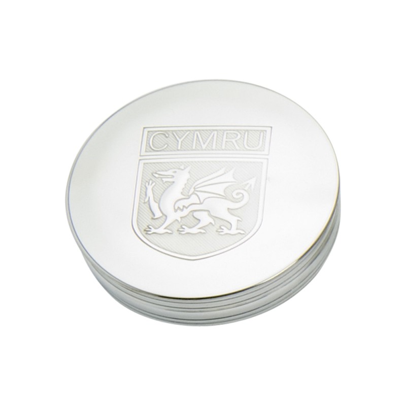 This beautiful handcrafted pewter trinket box has been individually hand made by our skilled craftsman in our Sheffield factory.  It comes in a two piece black gift box and would make an ideal gift for any occasion. Great for all your trinkets.  It has a unique circular Welsh shield on top with a black insert in the base.