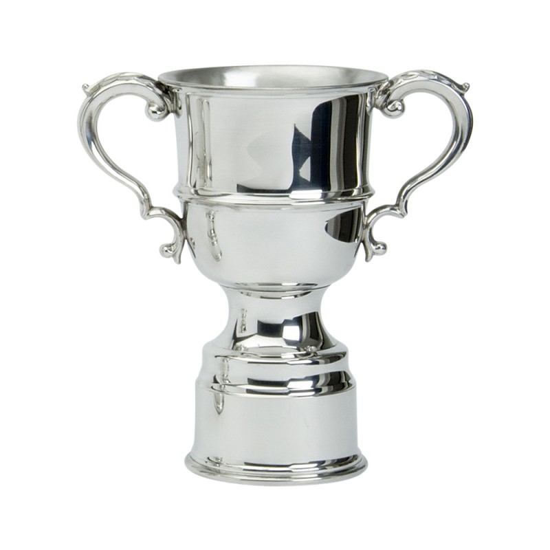 This is a Mackenzie style trophy - Pewter with a stunning design and patterned body. It has a tradition shaped georgian handles and all over polished finish. It comes in a plain black box. This is an ideal trophy of any sporting occasion for schools awards to golfing presentations. It is individually hand made in our Sheffield factory by skilled craftsmen.
