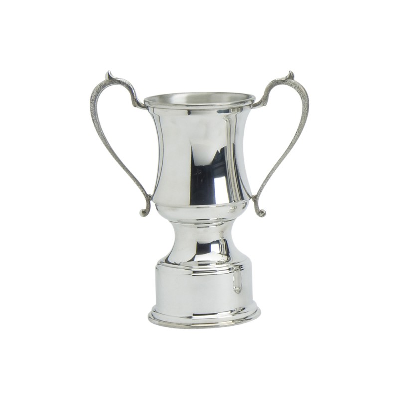 This is a Traditional style trophy - Pewter with a stunning design and patterned body. It has a ornate shaped handles and all over polished finish. It comes in a plain black box. This is an ideal trophy of any sporting occasion for schools awards to golfing presentations. It is individually hand made in our Sheffield factory by skilled craftsmen.