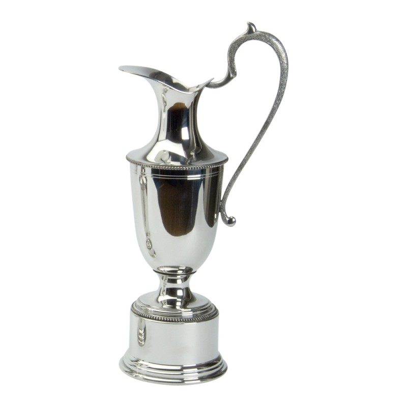 This is a Claret Jug style trophy - Pewter with a stunning design and patterned body. It has a tradition shaped handle and all over polished finish. It comes in a plain black box. This is an ideal trophy of any sporting occasion for schools awards to golfing presentations. It is individually hand made in our Sheffield factory by skilled craftsmen.